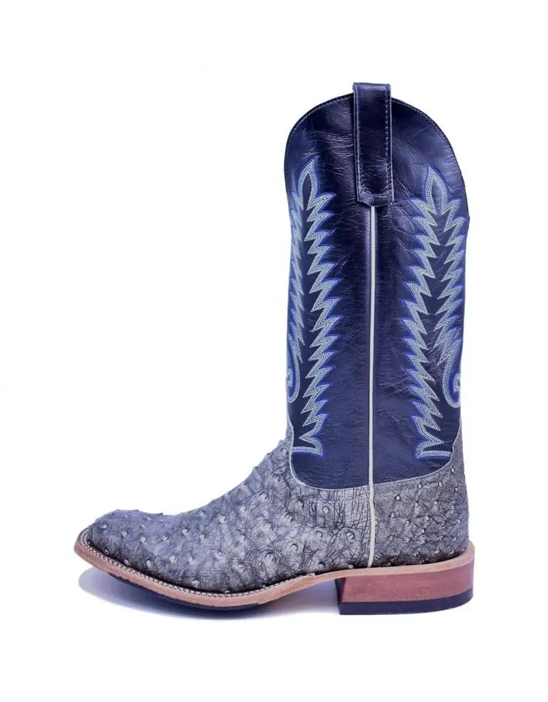 This is one bad to the “bone wash out” Outpost Exclusive Anderson Bean! If you were to rate the ostrich hide on a scale of 1 to 10, these would be a 12. The bone wash out ostrich pairs perfectly with gorgeous black kidskin tops and blue stitching.