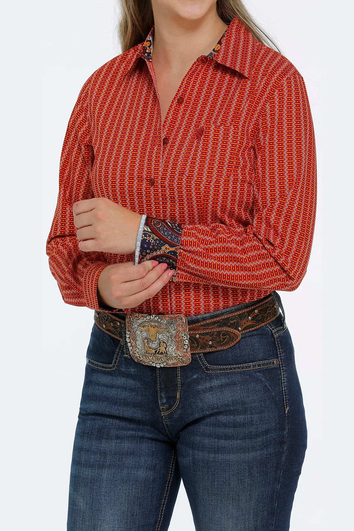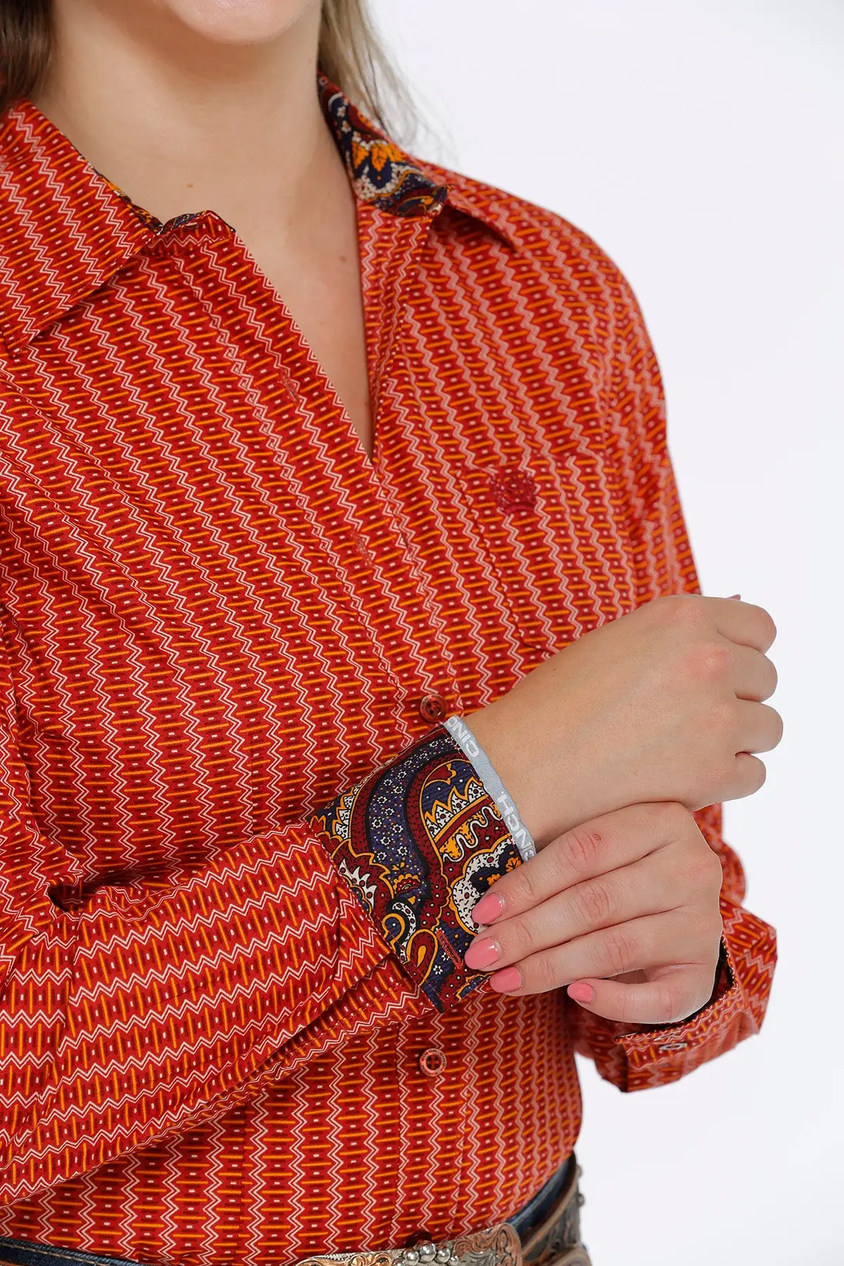 Cinch | Ladies Orange Print LS Shirt