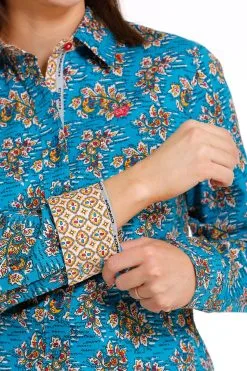 Cinch | Ladies Blue Print Stretch LS Shirt