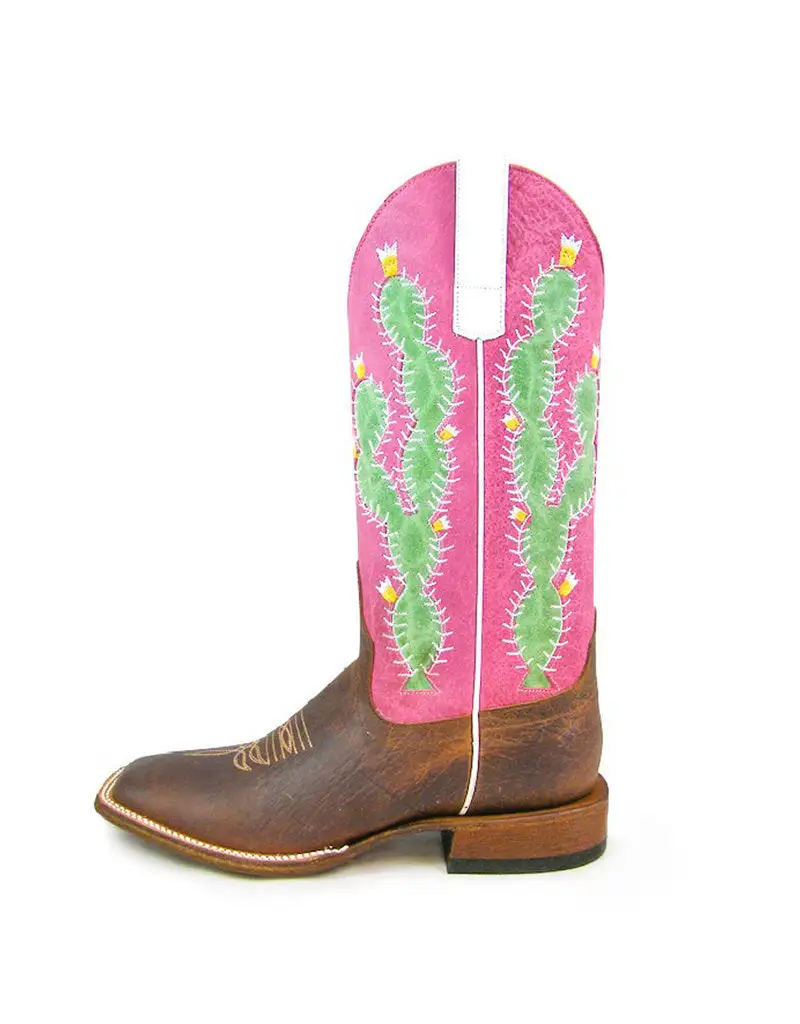 Vamp: Distressed Bison | Top: Pink Sinsation | Color: Brown/Pink | Top Height: 13″ | Toe: DB | Sole: Leather