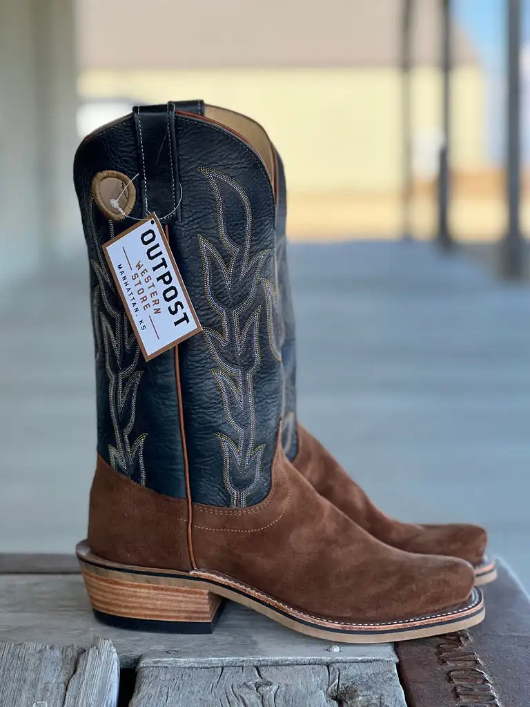 Gorgeous and built like a tank, this Outpost Exclusive Olathe Boot is the definition of a cowboy boot. Timeless color combination paired with a punchy toe/heel set-up make this a go-to boot for the cowpuncher or any person wanting a knock-out pair of boots.