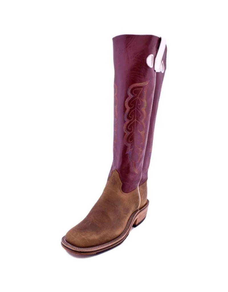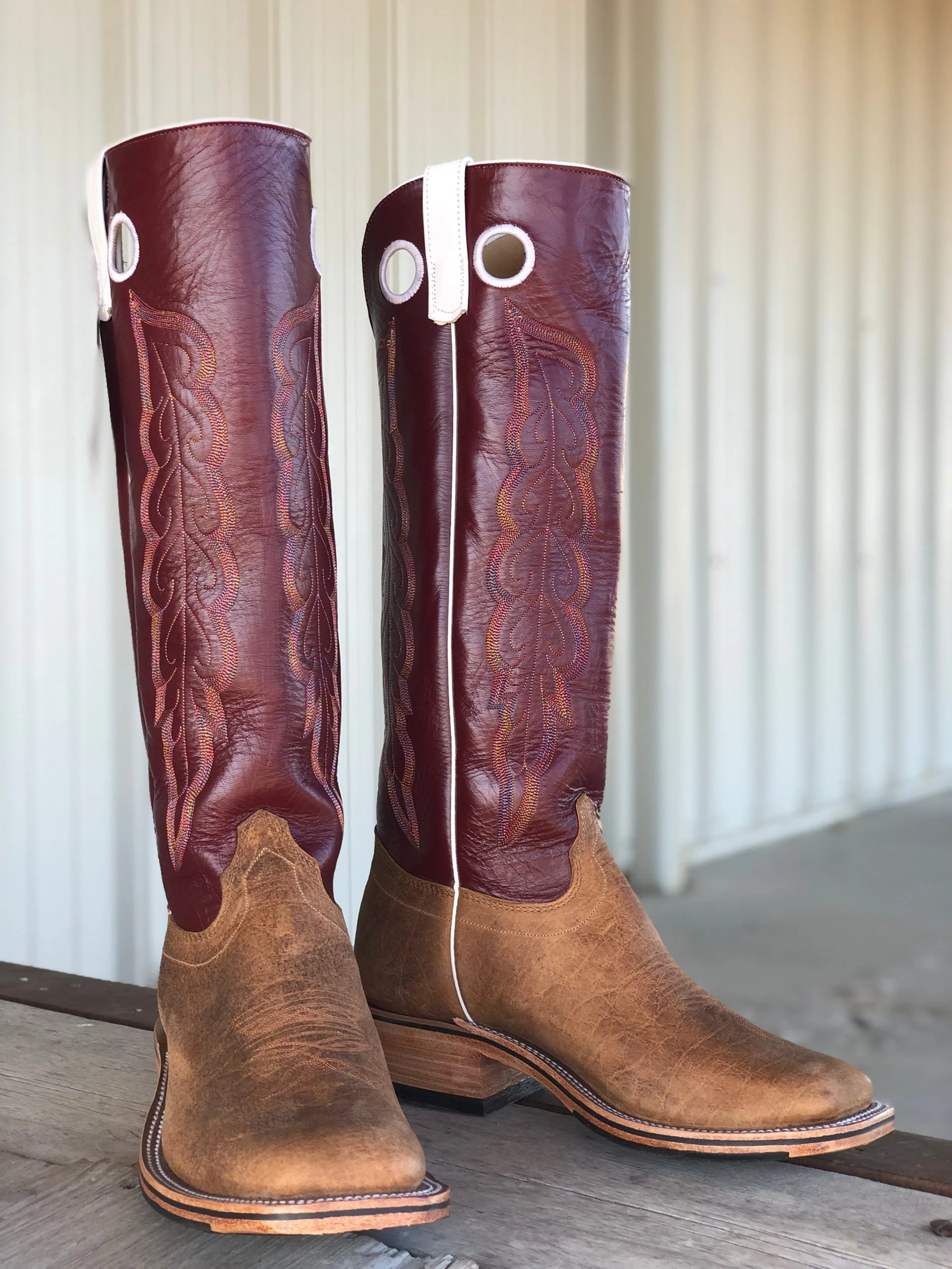 Vamp: Brahma Bison | Top: Sangria Kidskin | Color: Light Brown/Red | Top Height: 17″ | Toe: WS | Sole: Hybrid w/ Neoprene Midsole w/ Cush-N-Sole | Proudly made in the USA |