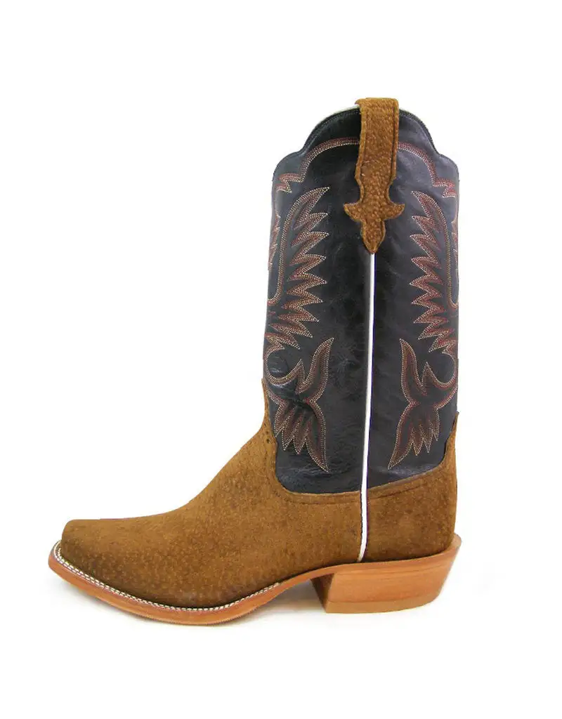 Vamp: Peanut Carpincho | Top: Black Calf | Color: Tan/Black | Top Height: 13″ | Toe: Cutter | Sole: Hybrid w/Cush-N-Sole | Proudly made in the USA |
