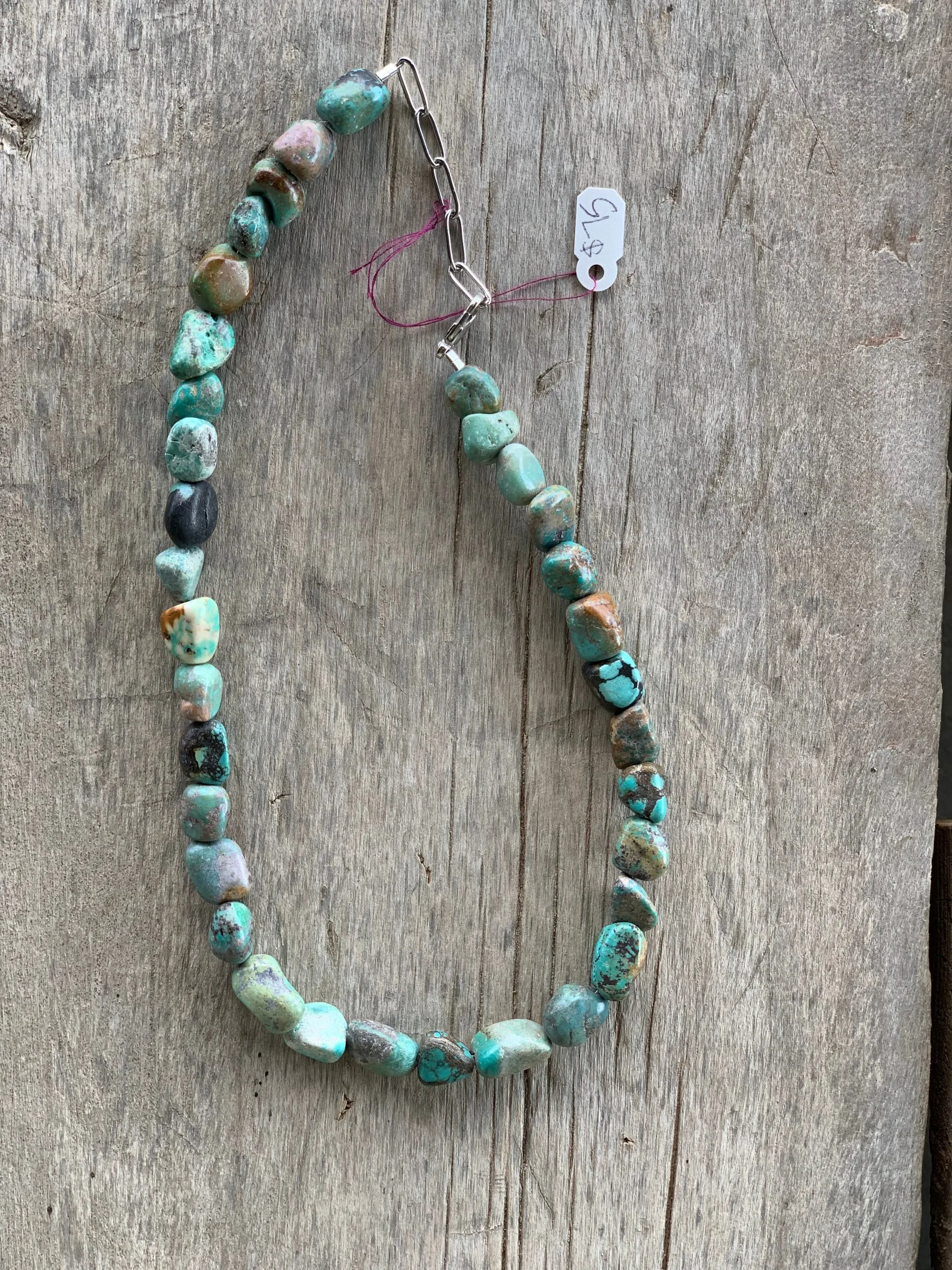 6” Chunky Rough Cut Turquoise. One of a kind, hand made, hand beaded, authentic stone jewelry, Made in USA