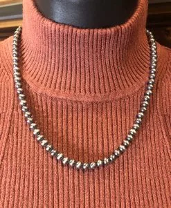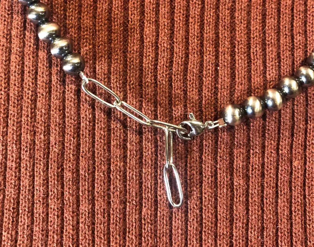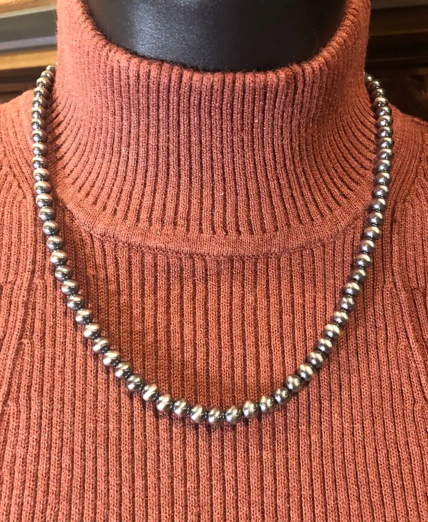 Sterling Silver Navajo Pearl Necklace |18” length, 6mm Beads | Hand Beaded | Local Kansas Artist