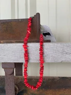 18” Red Corral Natural Shape Beads. One of a kind, hand beaded, authentic stone jewelry, Made in USA