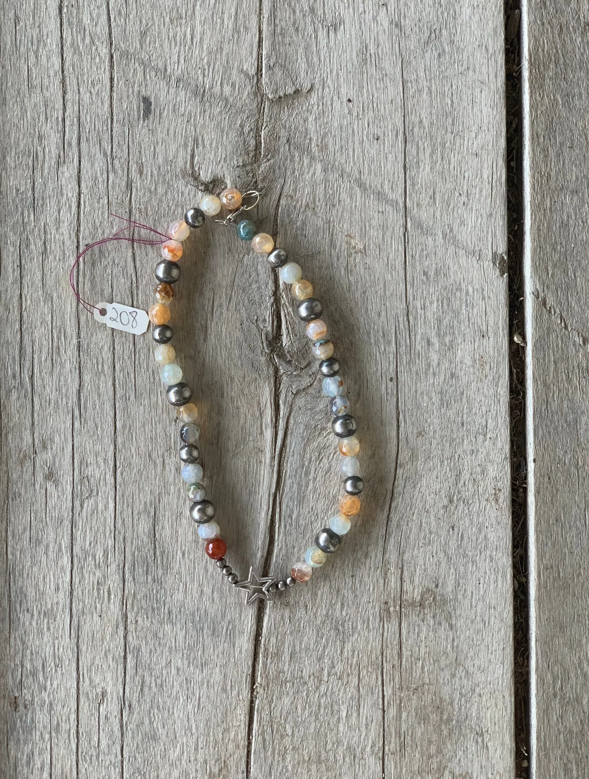 Multi Beaded Choker  w/ St One of a kind, hand made, hand beaded, authentic stone jewelry, Made in USA