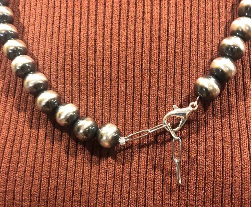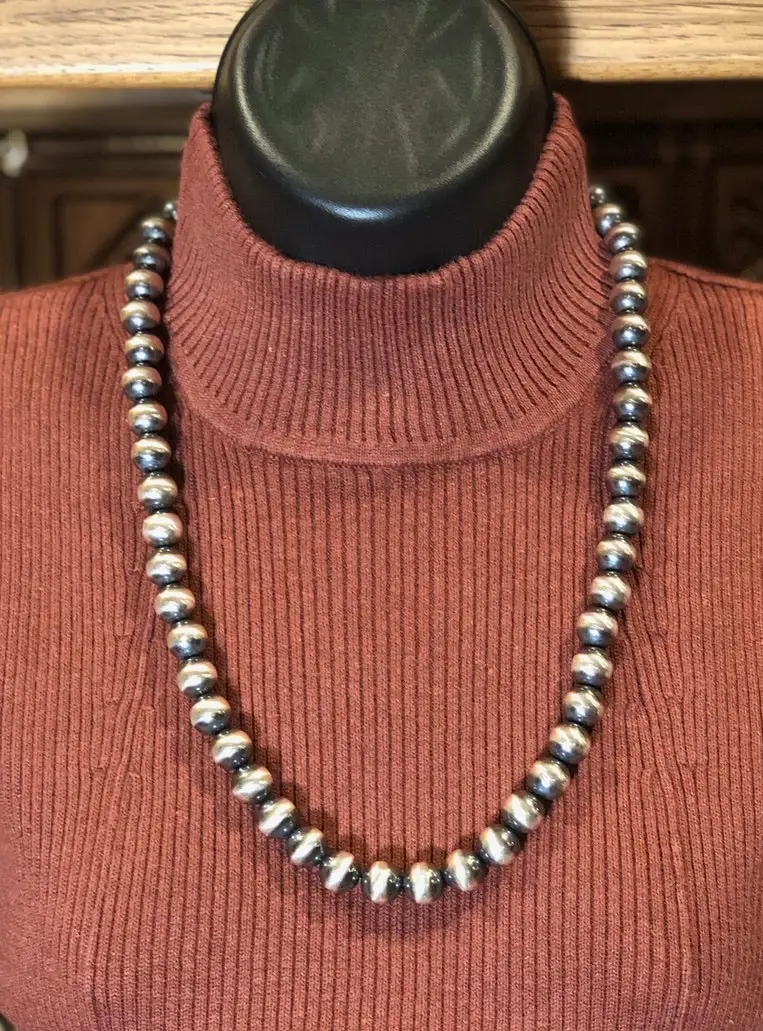 Sterling Silver Navajo Pearl Necklace | 24β length, 12mm Beads | Hand BeadedΒ | Local Kansas Artist