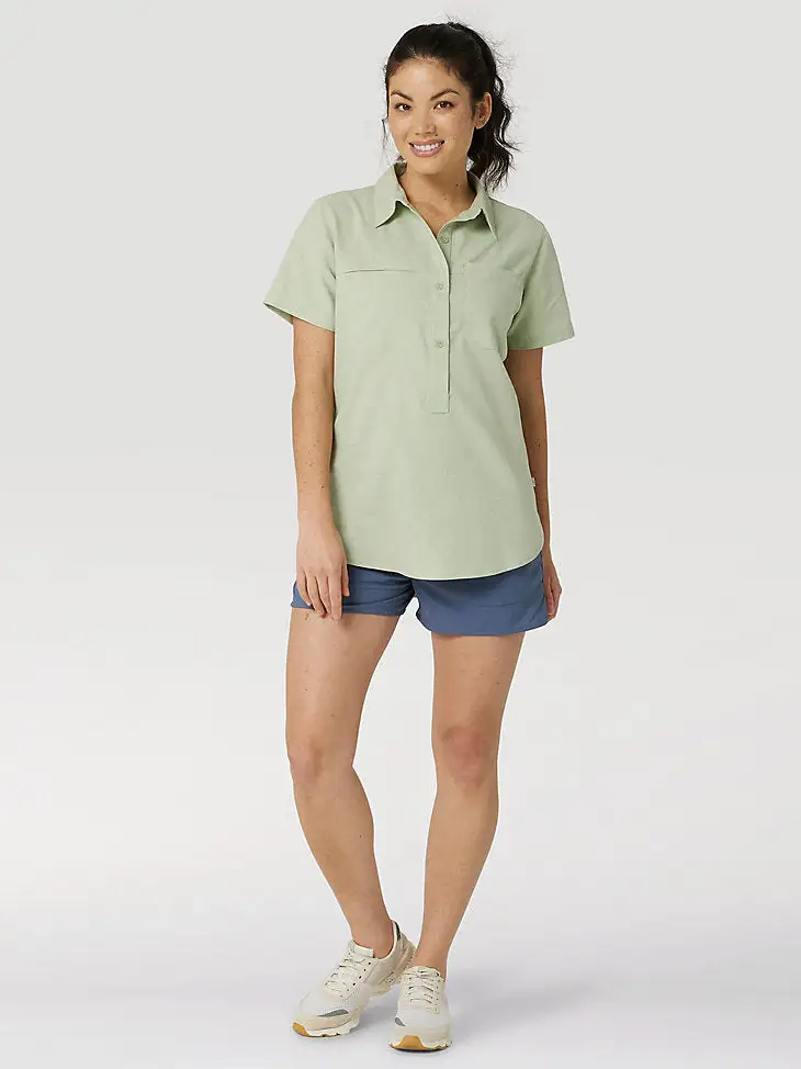 Wrangler | Ladies Reseda Green SS Button Front Popover Shirt