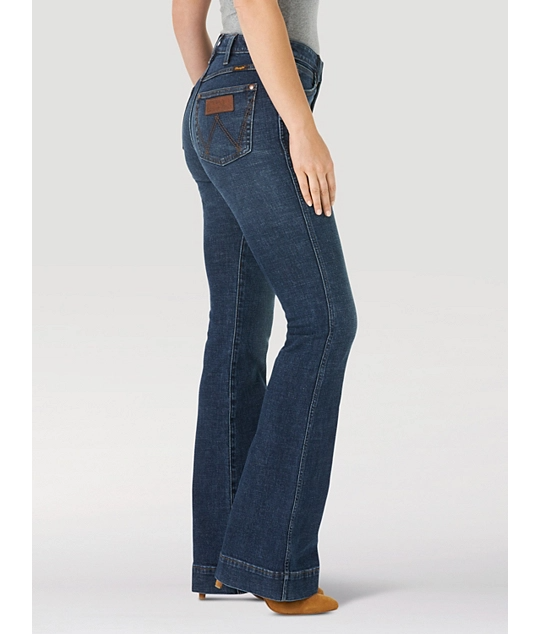 Your favorite Western jeans are going green. As part of the Wrangler Retro® Green Jean assortment, our women’s trouser jeans are reimagined to combine all the Western style you love with enhanced sustainability features you can be proud of. Inspired by our love of the land, the Green Jean is designed using a blend of recycled cotton and made exclusively in factories that have met some of the highest standards for prioritizing employee health and safety. Style couldn’t be missing from this Western classic—that’s why the Green Jean trouser features the same curve-flattering high rise and contoured waist of the originals. The style offers a close fit through the thigh before releasing at the knee to a subtle, wide leg opening that fits perfectly around your favorite cowgirl boots and Western-inspired heels.