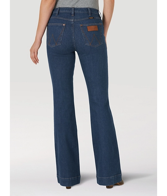 Your favorite Western jeans are going green. As part of the Wrangler Retro® Green Jean assortment, our women’s trouser jeans are reimagined to combine all the Western style you love with enhanced sustainability features you can be proud of. Inspired by our love of the land, the Green Jean is designed using a blend of recycled cotton and made exclusively in factories that have met some of the highest standards for prioritizing employee health and safety. Style couldn’t be missing from this Western classic—that’s why the Green Jean trouser features the same curve-flattering high rise and contoured waist of the originals. The style offers a close fit through the thigh before releasing at the knee to a subtle, wide leg opening that fits perfectly around your favorite cowgirl boots and Western-inspired heels.